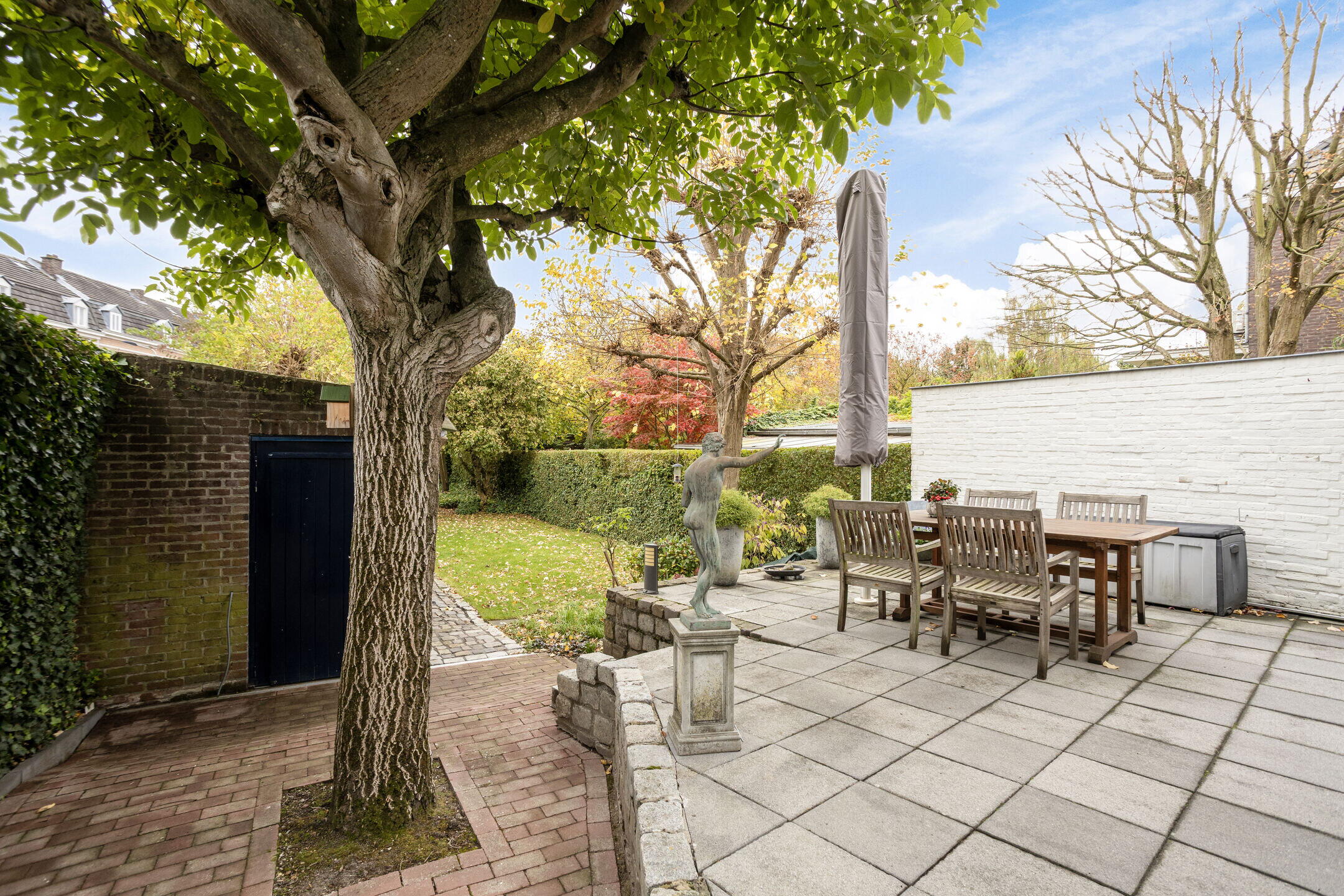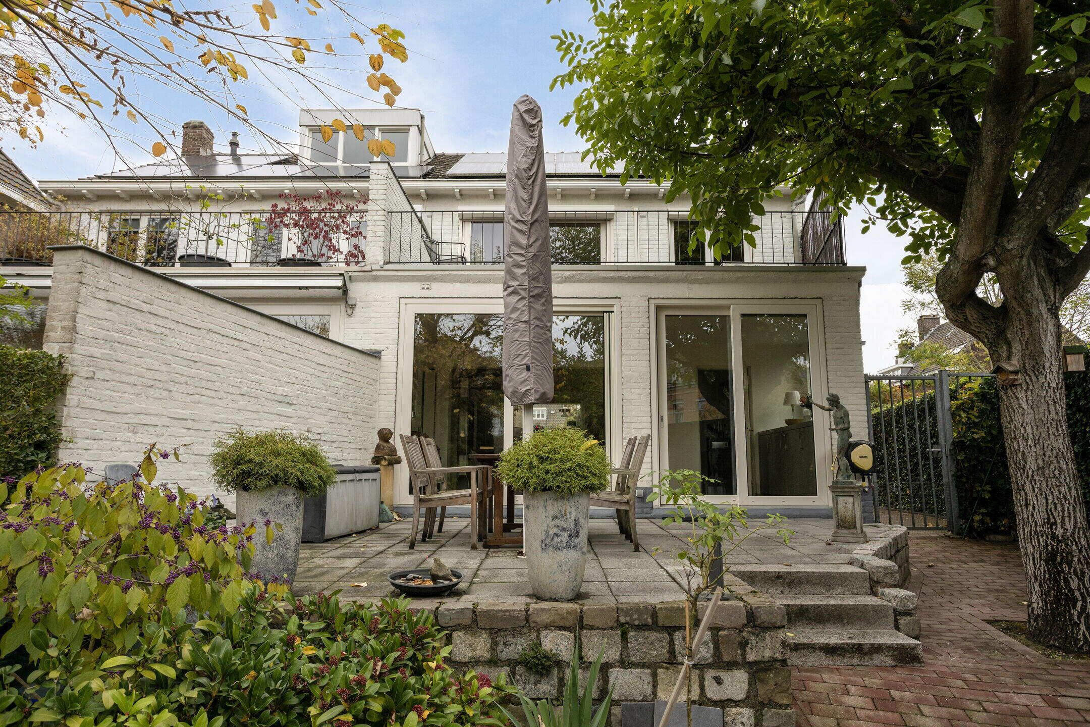 De woning beschikt over een fraaie achtertuin met groot terras, een oase van groen en een stenen berging (ca. 8 m²).