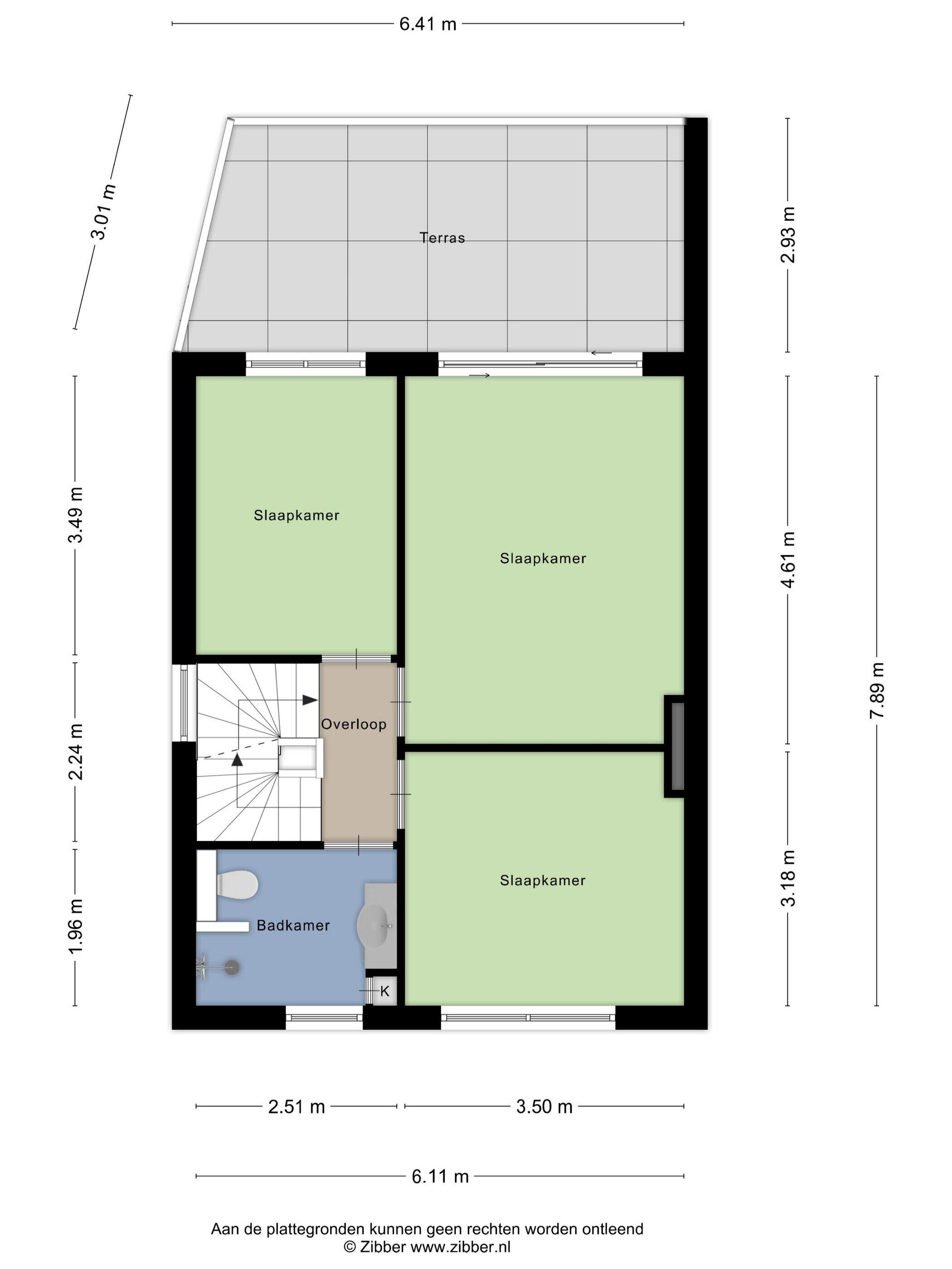 Slaapkamer 3 (ca. 9 m²), gelegen aan de linker achterzijde, geschikt als logeer- of werkkamer.